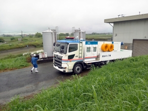 災害時の出動(排水ポンプ車設置)